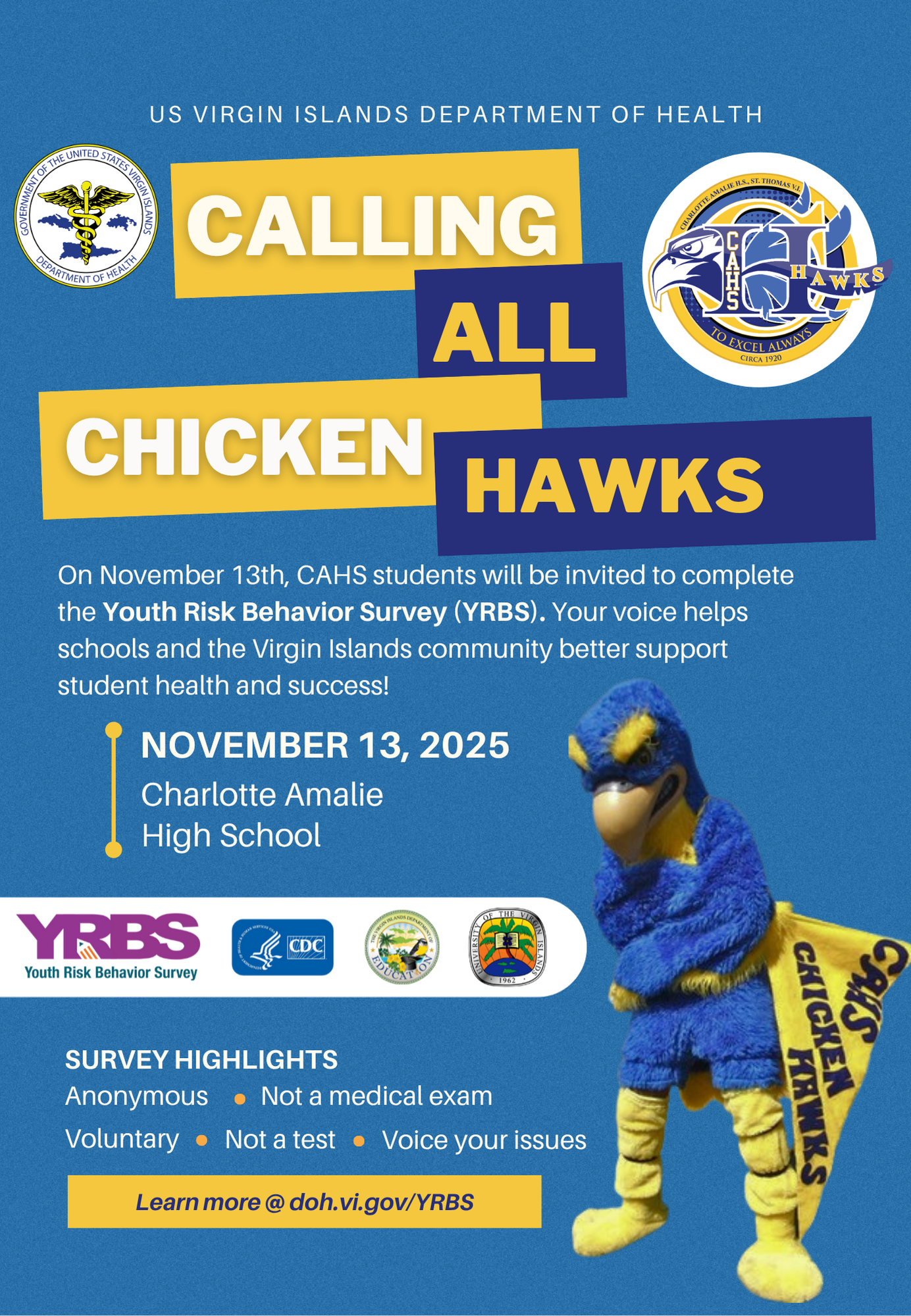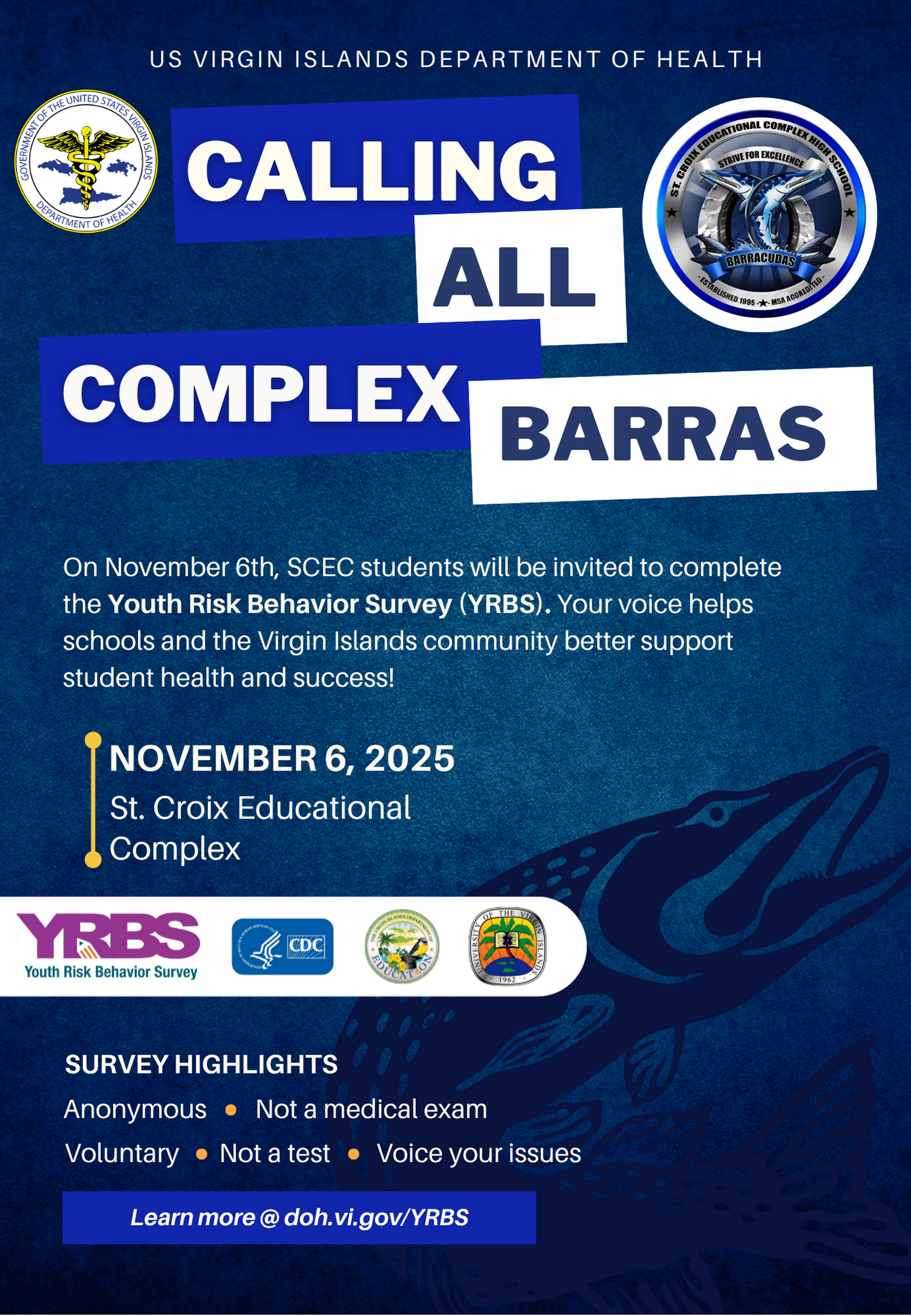 Only about 1,500 students across the territory are selected through a process managed strictly by the CDC. Neither the Department of Health nor the schools chooses which students will participate. The survey is conducted only in the four public high schools so that we can obtain a clear and consistent picture of student health in the Virgin Islands. The results, which will be available in summer 2026, help create programs and support for all youth in our community.